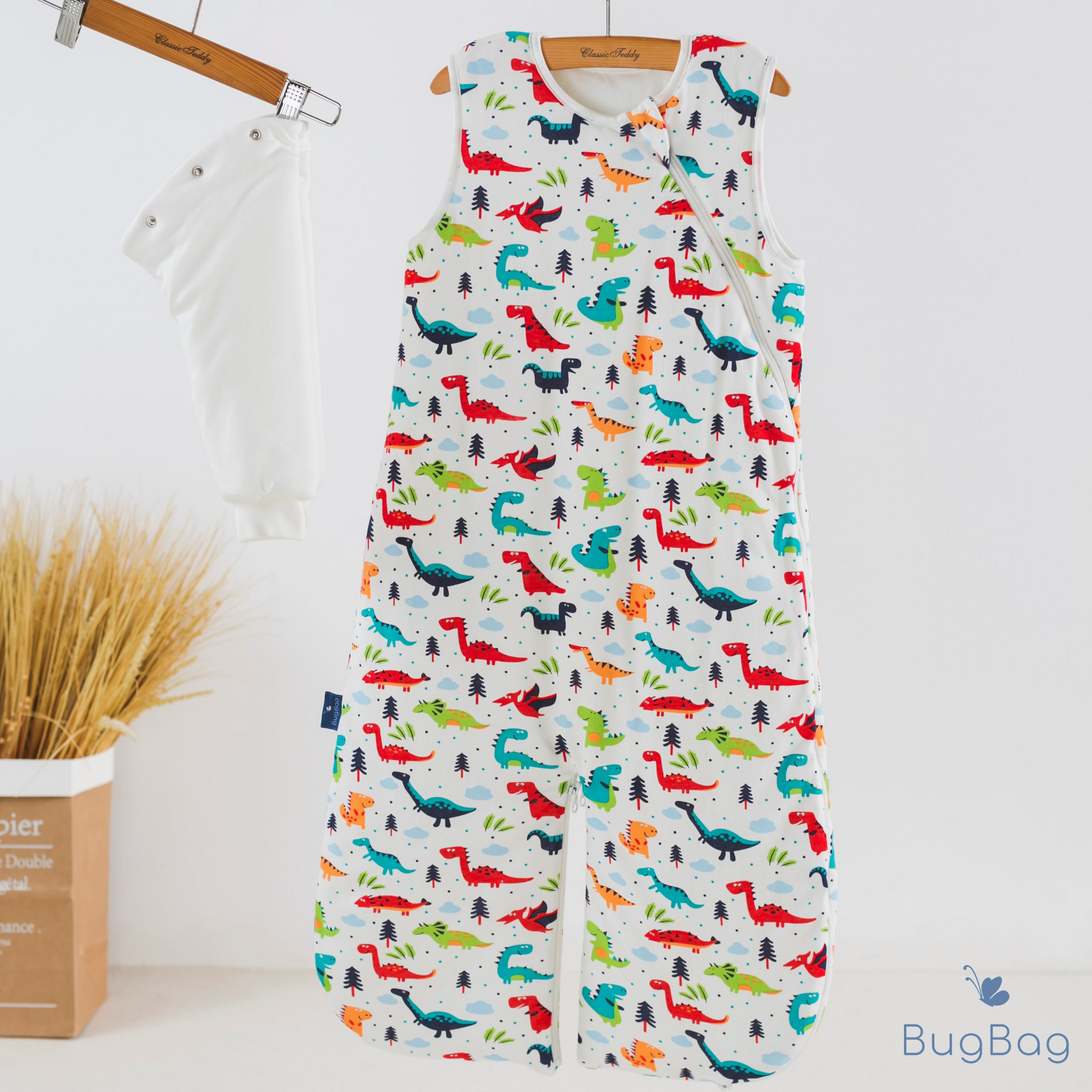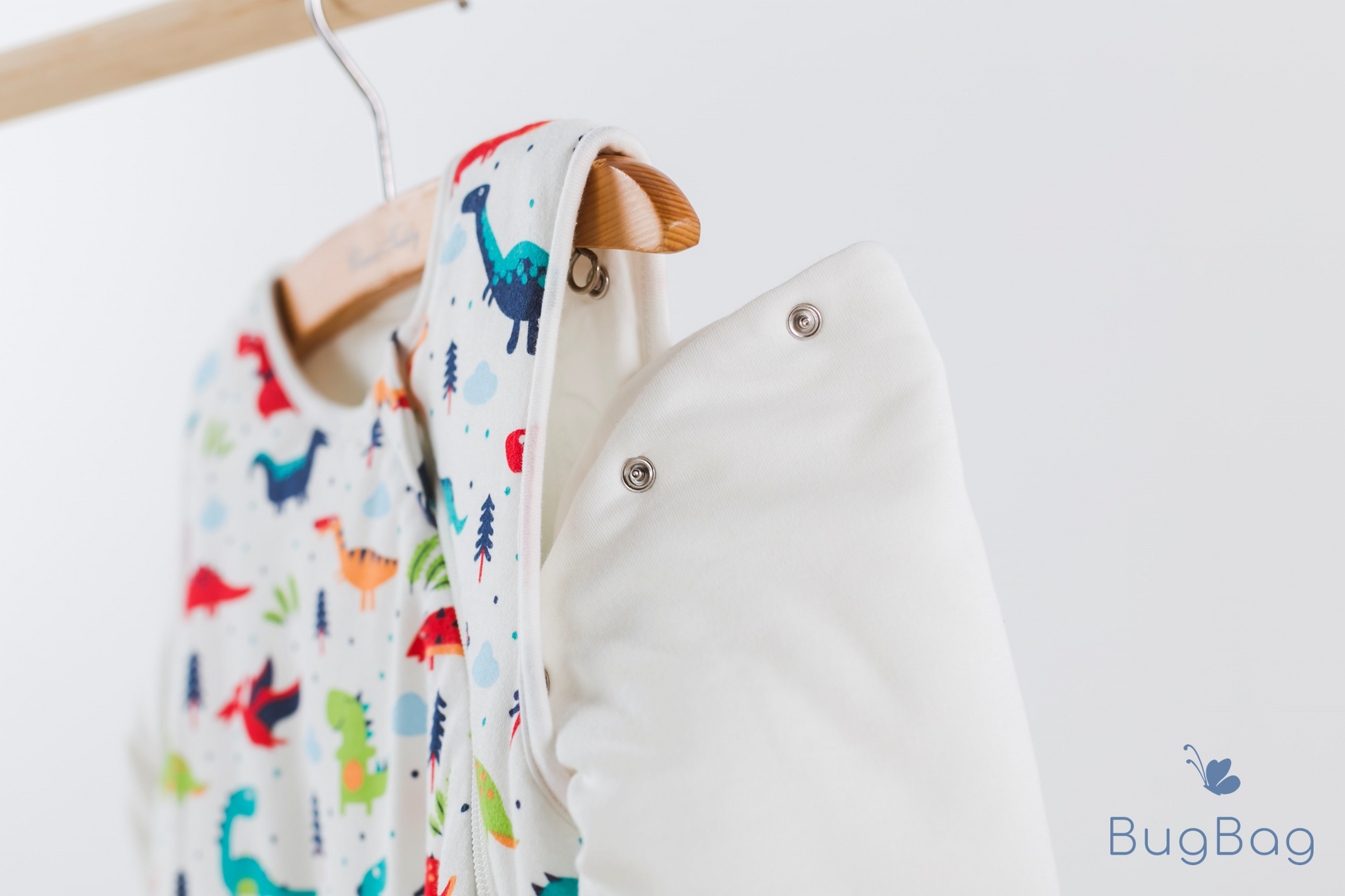 A super soft, luxurious cotton sleep bag with detachable sleeves. This BugBag transforms from a regular baby sleep bag into a jumpsuit, with a cleverly designed zip fastening at the bottom to separate the legs. This enables you to also use your BugBag in a baby carrier, pushchair and highchair. Perfect for transferring your sleeping baby straight into bed without disturbing them.