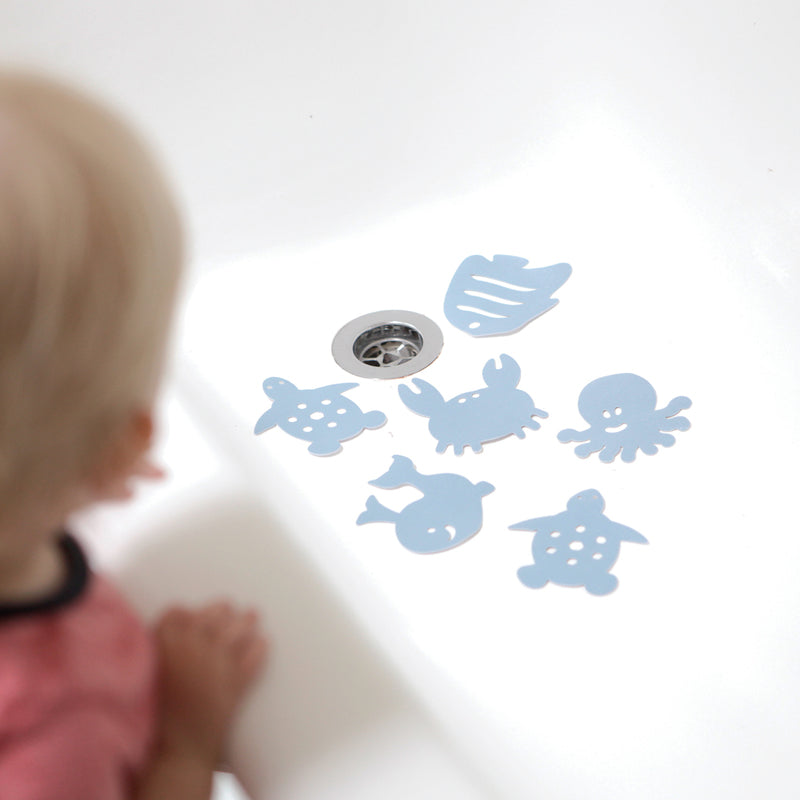 This handy pack of 10 sea life animals with adhesive undersides can be placed as required along the bathtub or shower floor. Offering friendly designs for little ones, whilst serving the purpose of preventing slips in the slippery environment and also indicating when the water is too for them.