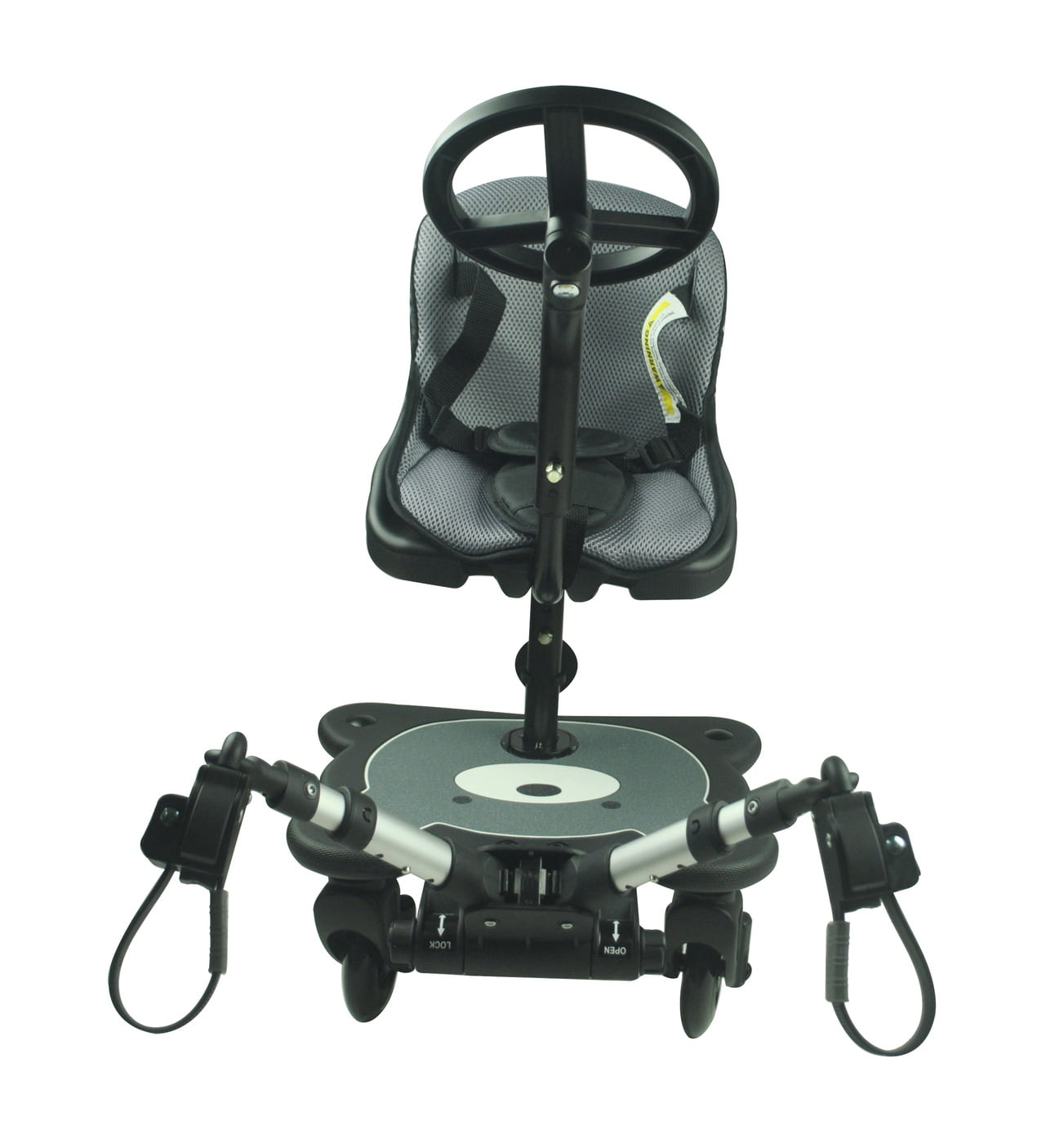 Strap your child in the seat or remove the seat for a 'stand on' buggy board.