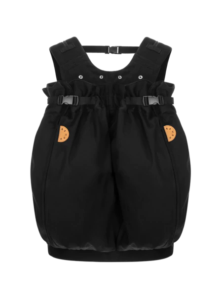 Machine wash at low temperature. Wash separately with a gentle, bleach-free detergent and low spin cycle after closing all Velcro and buckles. It can be tumble dried at low temperature. The bibs can be machine washed and dried at high temperature